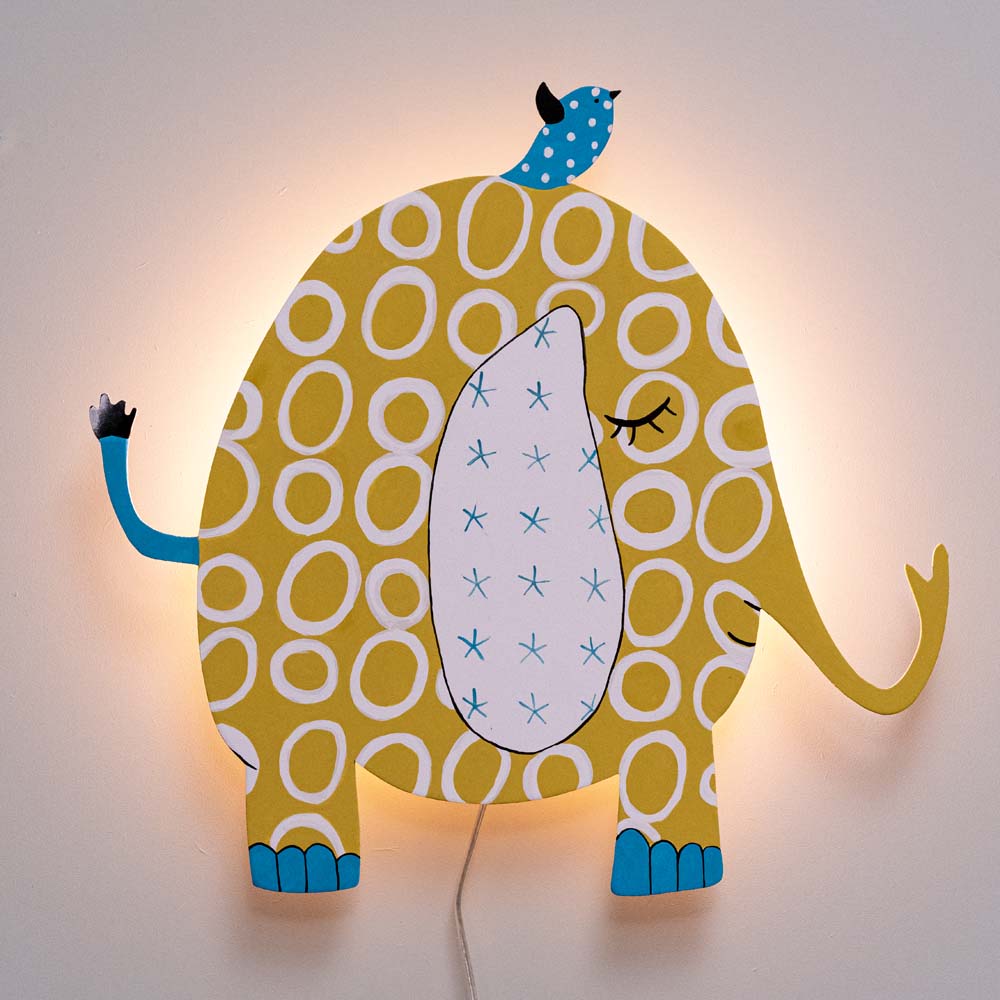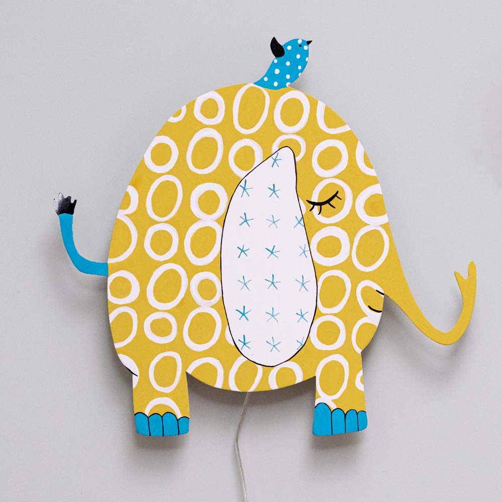 Handmade Wooden Wall Light – yellow elephant